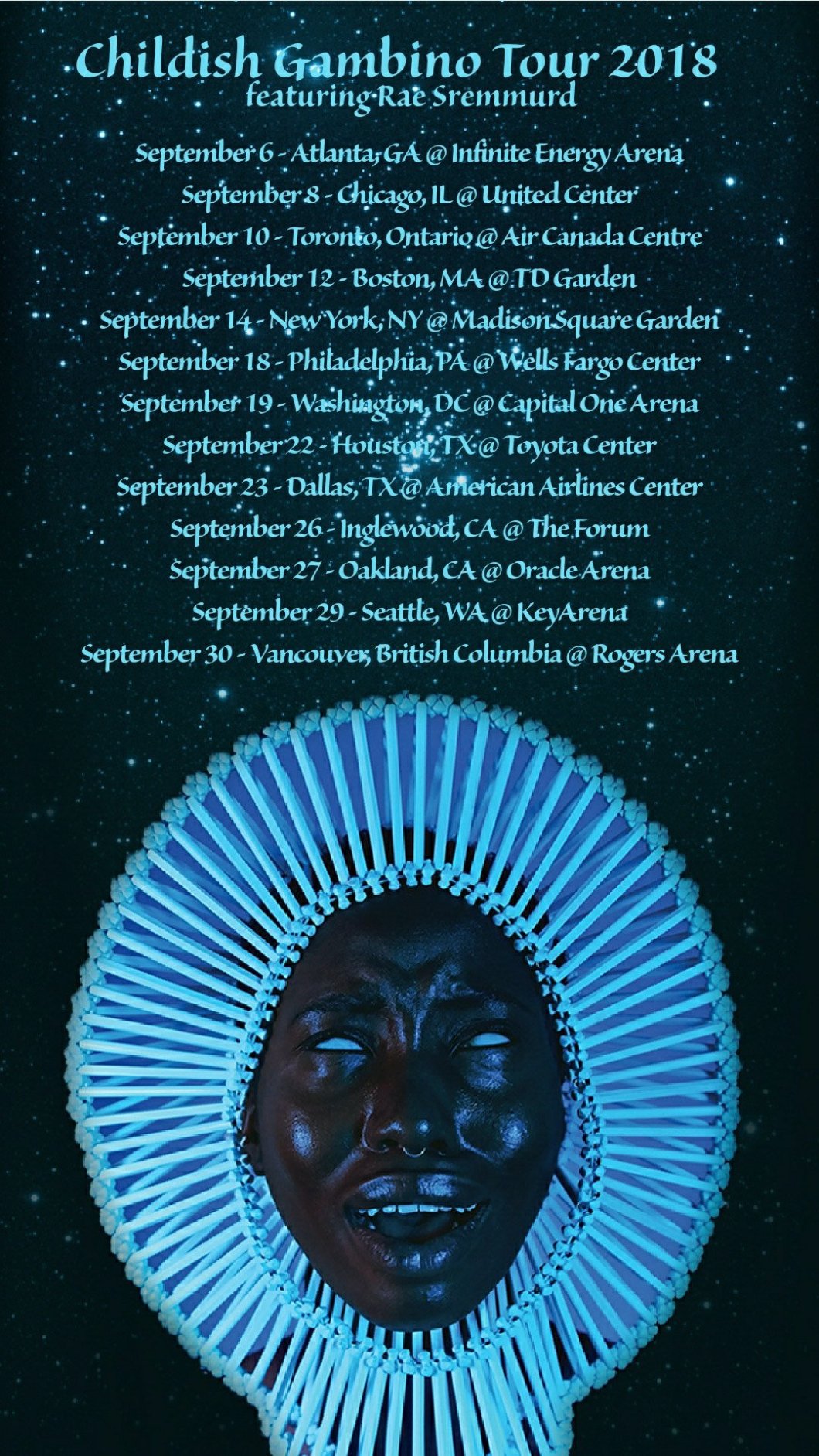 Late last year Glover announced he would be retiring the name Childish Gambino. This left fans wondering if they’d ever see him perform his newest materials live. Yet again, Gambino/Glover defy expectations and announce a limited tour through 16 arenas in September. Honestly, this may be the last time the world will get to see Childish/Glover take the stage.